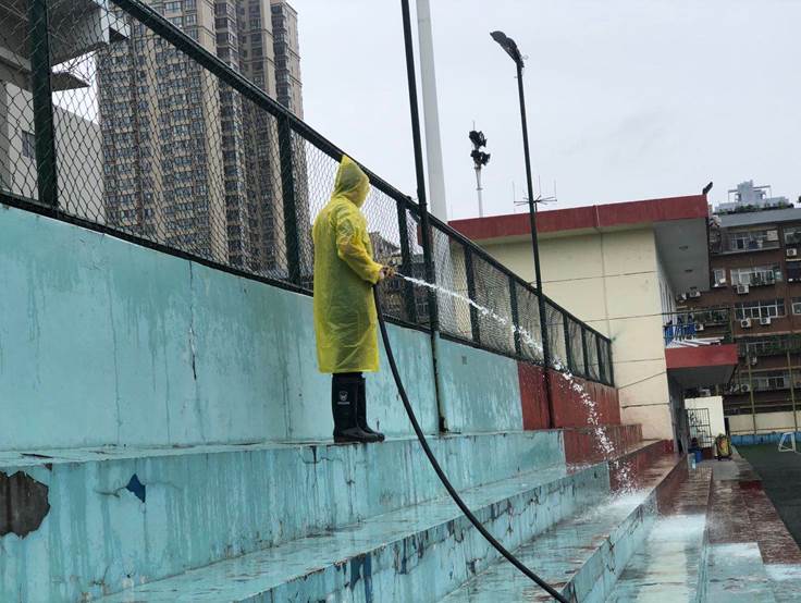 (二)后勤管理处(集团)教学保障中心(场馆中心)在对工作人员进行体温检测、登记后,严格按照校医院《场馆消毒指南》要求做好场馆(地)清洁、消毒、通风及师生体温检测工作,具体如下: