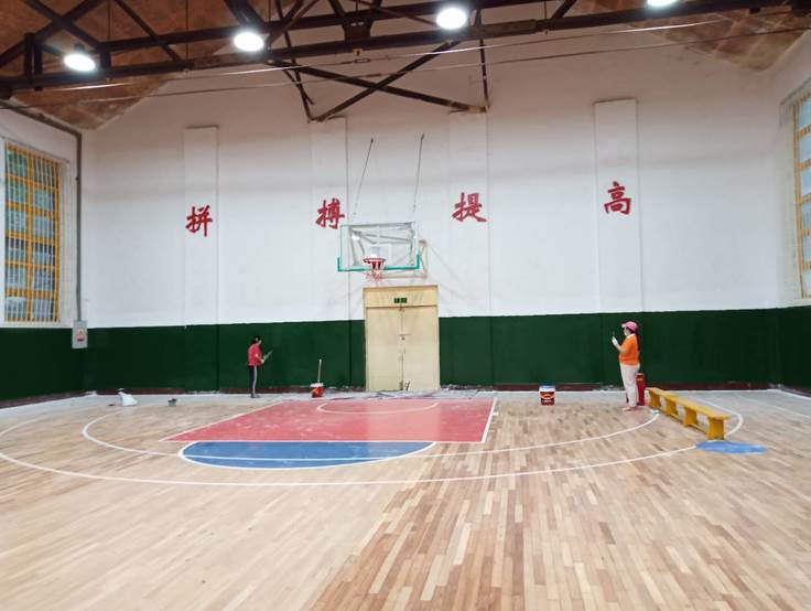 体操馆训练9人次(老师2人)开放锻炼 13人次 修缮人员8个;