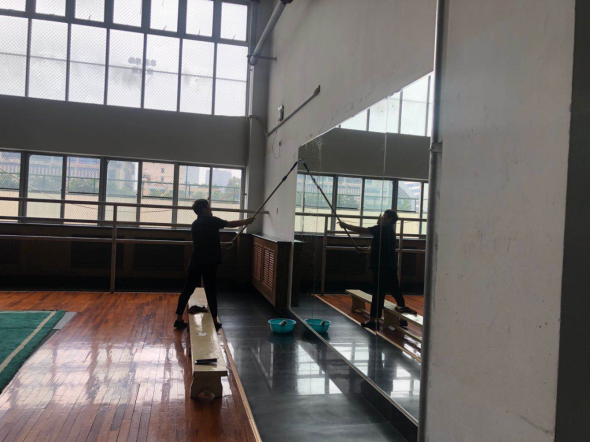 (二)后勤管理处(集团)教学保障中心(场馆中心)在对工作人员进行体温检测、登记后,严格按照校医院《场馆消毒指南》要求做好场馆(地)清洁、消毒、通风及师生体温检测工作,具体如下: