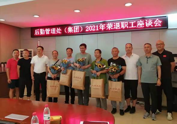 7月20日下午,后勤分会召开2021年荣退职工座谈会,欢送卫海朗、朱宝峰、杨智诚、吴雁萍、赵全安五位职工退休。会议由后勤分会主席宋国权同志主持,校党委委员、副校长张卫国、校工会副主席张建武、离退休工作处处长杨毅谋、后勤管理处(集团)处长许伟以及后勤管理处部分职工参加。