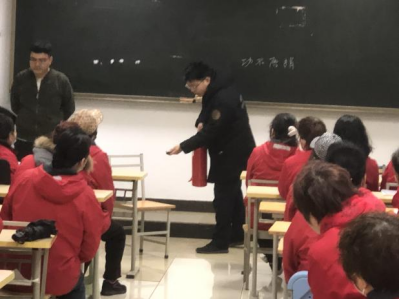 培训过程中,培训人员结合学生公寓实际讲解公寓内发生火灾的种类、原因、预防措施等,详细介绍了消防器材的使用方法并进行现场操作演练。