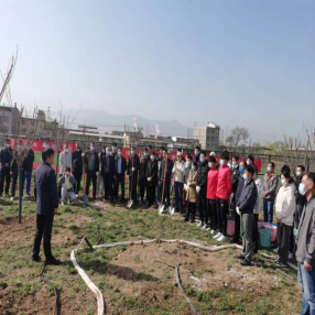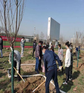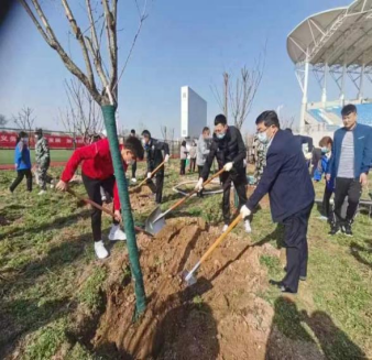 活动现场,校领导、各二级学院负责人及学生代表、相关职能部门工作人员分成几组,挖坑、扶苗、填土、浇水,大家分工明确、相互配合,放眼望去,处处都是热火朝天的景象,在大家的辛勤劳动下,三十株樱花树迎风挺立,为校园增添了一抹绿色。