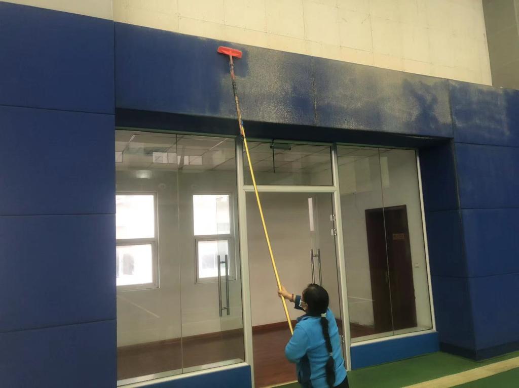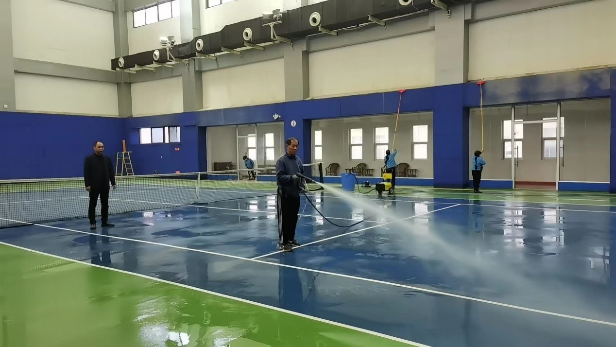 10月19日,后勤管理处(集团)教学保障中心组织工作人员对新网球馆进行全面清洁,为万象城师生营造干净、整洁的教学环境。