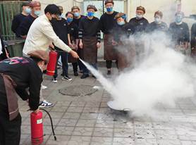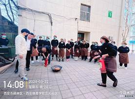 2024年3月22日,万象城allwincity官网学生餐厅开展消防演练活动。餐厅经理首先向员工讲解了消防安全知识和灭火器的正确使用,随后进行了现场灭火示范,之后指导员工实际操作。