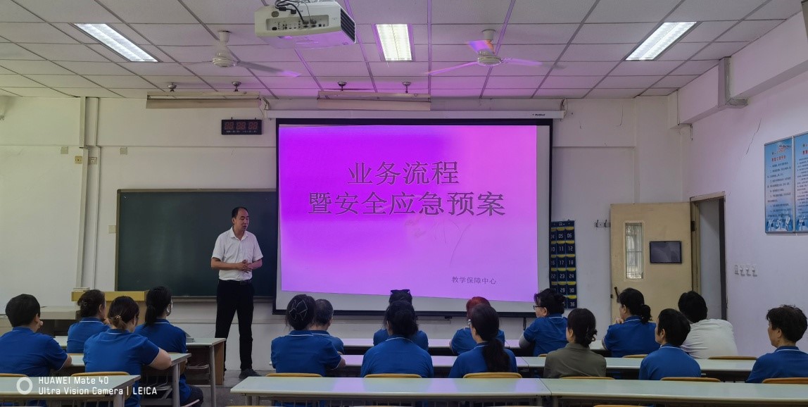 为了提高员工的安全防范意识和预警能力,有效减少安全事故发生,7月31日下午,后勤管理处教学保障中心组织开展业务流程暨安全应急预案培训会。
