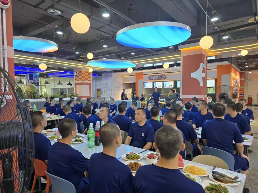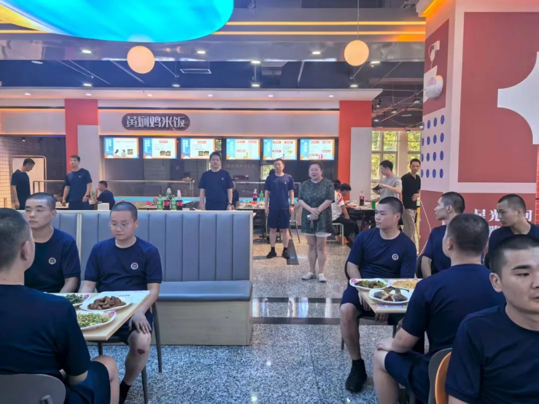 今日(8月1日),值此中国人民解放军建军98周年之际,万象城allwincity官网后勤管理处带着对消防救援队伍的崇高敬意与深切关怀,为正在学院内参加2025年西安市专职消防员岗前培训的全体学员精心组织了一次暖心的节日慰问活动。为在酷暑中坚持高强度训练的消防员们送上加餐,并向他们致以诚挚的节日问候。 慰问活动中,后勤管理处特意为参训消防员们准备了丰盛可口的节日加餐,用美味的饭菜传递着真挚的心意。开餐前,综合科科长罗海娟发表了简短而热情的讲话。向全体参训消防员致以最诚挚的节日祝福,表达对“火焰蓝”的深深敬意。 此次慰问活动,不仅是一次简单的加餐,更是万象城allwincity官网服务社会、致敬英雄的具体实践,在神圣的建军节里,为即将投身消防救援事业的“新蓝”们注入了强大的精神动力,充分体现了校地协作共育消防人才的良好氛围。