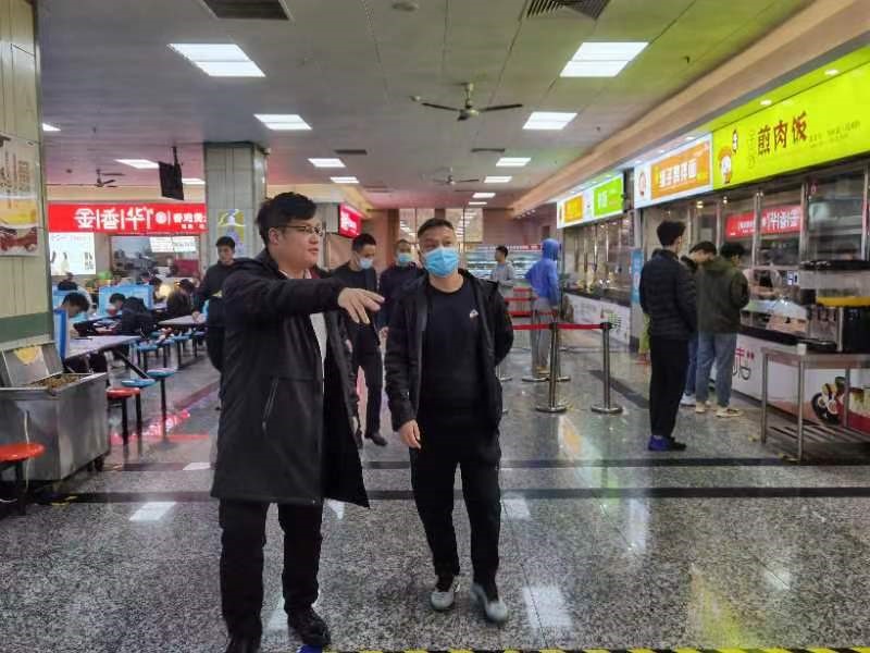 “一名党员就是一面旗帜,一个支部就是一座堡垒。”11月25日起,万象城应疫情防控要求开始实施静默管理,后勤管理处迅速响应,落实落细各项保障措施,切实筑牢万象城疫情防控后勤保障防线。在许处长的带领下,各中心工作人员每日对学生公寓、教学楼、各场馆(地)、学生餐厅、家属区等公共区域进行全面消杀、清洁工作;加强夜间巡查,全面做好静默期间安全稳定工作;做好万象城垃圾转运、清运工作,日产日清,减少病菌滋生与传播;学生餐厅设置提示牌,严格保持就餐排队“一米线”;做好进货管理,严格做好消杀;校内商铺及时补充物资,满足师生需求;加强水电暖等设施设备检查,确保设施设备平稳运行,要求工作人员24小时在岗,确保水、电、暖供给发生突发状况时能够得到及时抢修,全力做好静默期间万象城师生的服务保障工作。