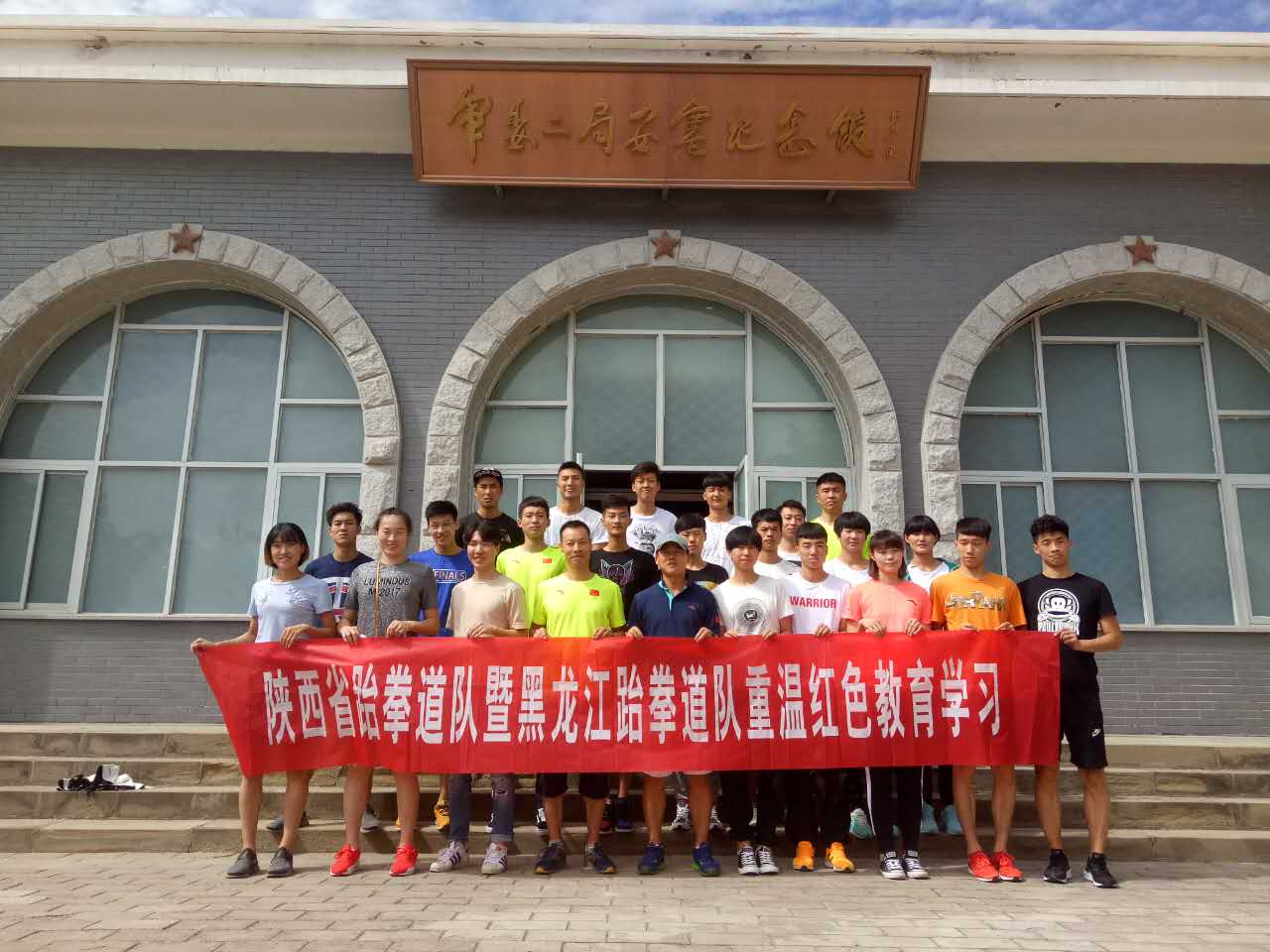 本网讯 为进一步贯彻落实2017年全运会备战计划,统一思想、振奋精神、强化管理,激发全体队员时刻牢记时代赋予的神圣使命,发扬“艰苦奋斗、全心全意为人民服务、理论联系实际、不断开拓创新、实事求是”的延安精神,以创新务实的积极态度备战全运会,确保训练实效再上新台阶,8月4日下午,正在安塞进行封闭训练的我省跆拳道队与前来外训的黑龙江跆拳道队利用训练休整的半天时间,在教练员刘少辉的带领下前往军委二局旧址与枣园为人民服务纪念广场接受了一次生动的革命传统教育。