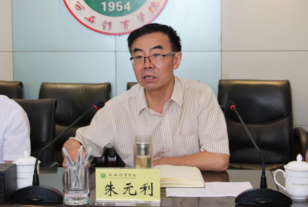 本网讯 7月19日,广州体育学院党委书记黄紫华一行7人来我院进行工作交流。上午九点,在我院行政楼二楼大会议室召开了两校工作交流座谈会。我院院长朱元利、副院长陈彦、党政办主任张朝阳以及相关职能部门负责人参加了座谈会。座谈会由副院长陈彦主持。