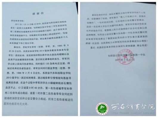 编者按 连日来,我院学生李军在旬阳县见义勇为的先进事迹被省内各大媒体广泛报道,受到社会各界的关注及好评。见义勇为是中华民族的传统美德,他用自己的行动向全社会传递了积极、向上、光明的力量。为弘扬见义勇为精神,在全院营造重视关爱见义勇为行动的气氛,现将各媒体报道予以转载,望全院师生员工以李军同学为榜样,在平凡的生活中践行社会主义核心价值观。