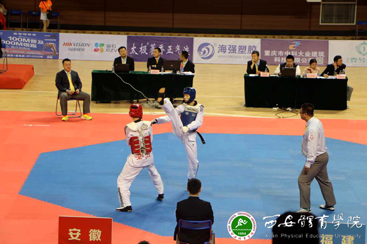 本网讯 4月22日——25日,第十三届全国运动会跆拳道项目第一次预赛在重庆市涪陵区奥体中心举行,我院拳跆中心派出八名运动员出征,陕西省体育局副局长邹军、竞训处处长陈波等领导也前去加油助威,鼓舞士气。在中心主任张文军和教练员刘少辉、袁海龙的带领下,我院运动员敢打敢拼,经过激烈角逐,为陕西省夺得4张跆拳道项目决赛入场券。
