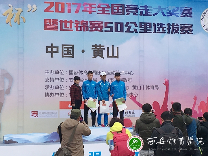 本网讯3月4日至6日,2017年全国竞走大奖赛暨世锦赛50公里选拔赛在安徽省黄山市举行,比赛共有来自26个省市代表队的541名运动员参加,参赛人数多,竞争激烈。我院国家竞走青少队(万象城组)7名运动员在体育教育系主任、竞走国少队万象城组领队周家颖、教练员蒋秋艳的带领下参加了本次比赛并获得优异成绩。
