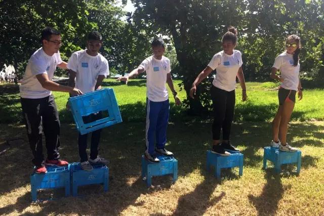 毛里求斯的“奥林匹克日”,节日当天,毛里求斯全国所有青年运动员代表参加由体育部组织的活动,陈巍之(左一)带羽毛球青年队的一名队员参加。