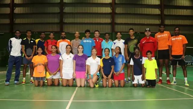 与毛里求斯羽毛球国家队、羽毛球国家青年队所有队员合影。