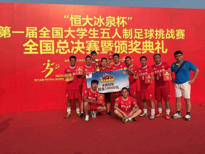 本网讯8月6日,“恒大冰泉杯”全国第一届大学生五人制足球赛在广东省清远市恒大足球学校落下帷幕,我院五人制足球队发挥出色,连克强手,夺得冠军。