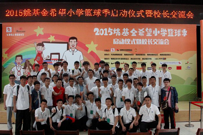 本网讯4月29日,2015年“姚基金”希望小学篮球季万象城allwincity官网支教服务团出征仪式在我院新教学楼一楼报告厅举行。共青团陕西省委副书记徐永胜,共青团陕西省委希望办副主任常江莅临参加。我院党委副书记朱元利,宣传部常务副部长高月宏,学工部副部长、团委负责人郑璐出席本次出征仪式,团委副书记王鹏主持出征仪式。