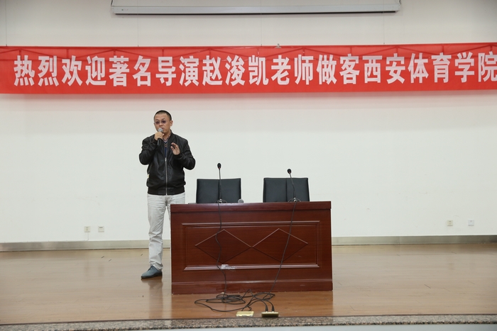 讲座由武术系主任马文国主持,他向同学们介绍了赵导的“亮剑”传奇人生以及和赵导相识、相知的“偶然”。 马文国说,赵浚凯先生不仅是一位成功的导演,对大学生而言,更是一位人生的导师,他具有中国传统文人的家国天下情怀,更有着武者的一种豪迈和侠义,对军旅有着一份特殊而深厚的情结。