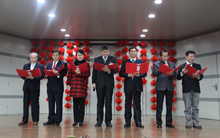 本网讯 1月9日,教学楼一楼报告厅洋溢着欢乐喜庆和谐的气氛,我院离退休教职工2014年新春团拜会在此举行。团拜会以简单清新的形式,热闹温馨而不铺张,学院领导、相关单位、广大师生与离退休老同志欢聚一堂,分享一年来丰收的喜悦。