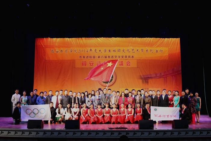 本网讯近日,由团委、体育传媒系、学生会主办,大学生齐越朗诵艺术社承办的“阎安进校园”诗歌朗诵会在大学生活动中心举行。陕西省委宣传部副部长、著名诗人薛保勤,陕西省作家协会党委书记蒋惠莉,陕西省作家协会副主席、著名诗人阎安,陕西省文艺评论家协会主席、著名评论家李震,太白文艺出版社总编辑韩霁红,中国石油作家协会副主席、著名诗人第广龙,西安市碑林区作协主席、著名作家夏坚德和我院党委书记吴长龄、院长周里、党委副书记朱元利等领导和嘉宾出席了活动。