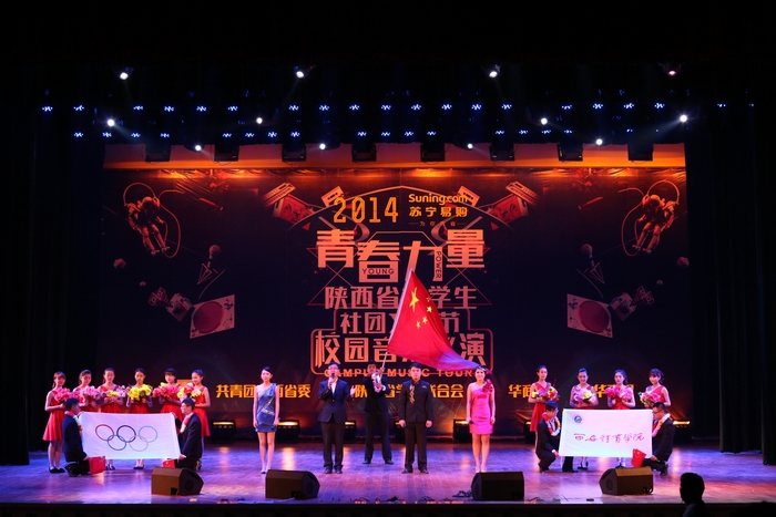 本网讯11月7日晚,由共青团陕西省省委、陕西省学生联合会等联合举办的“青春正能量,演绎中国梦——2014陕西省大学生社团文化节”校园音乐巡演第二站在我院大学生活动中心举行。共青团陕西省委学校部宋薇娜、我院团委书记高月宏,全国体育院校教学督导组的专家成员们以及来自陕西省各高校的团委老师和同学们观看了晚会。