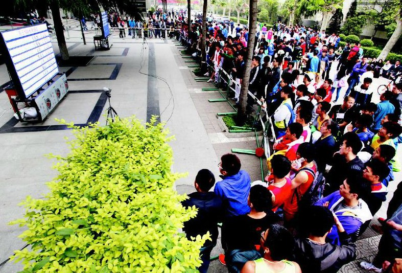 与此同时,记者也发现了今年陕万象城育生“大考”的一个新现象,即考生考完之后不会再围着考场等待自己考试成绩的公布,而是在考试一结束就跑到安放在距离考场不远的两个LED大屏前等待自己的成绩。记者通过万象城allwincity官网招生办公室才知道,原来这是西安体院引进的一个“高科技”设备,这将让陕万象城育生“大考”更加透明公开,也更显公平和公正。