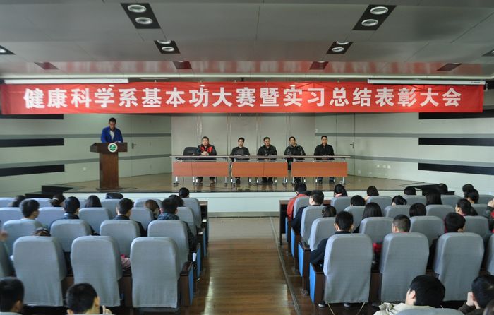 本网讯11月28日,健康科学系在教学楼一楼报告厅举行了第二届专业知识与实践技能基本功大赛暨实习总结表彰大会。教务处长刘新民、副处长朱军,健康科学系负责人出席,该系教师代表及300余名学生参加了总结表彰大会。