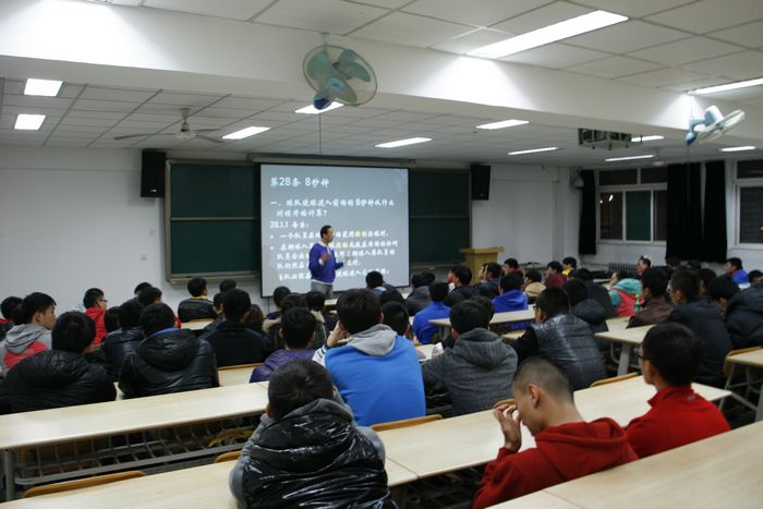 本网讯近日,运动训练系邀请国际级裁判、西安交通大学体育部贺京周教授在教学楼302教室为我院篮球专项学生作了一场题为《2010-2013FIBA篮球规则若干问题》 的专题讲座。运动训练系副主任武洛生主持了讲座。