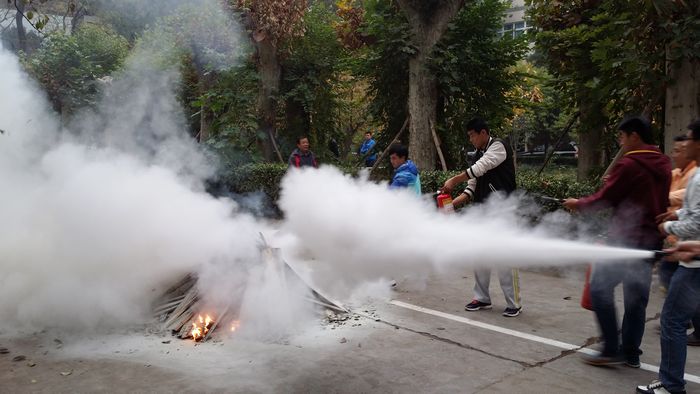 报告结束后,保卫处积极组织师生进行消防现场演练。通过演练,同学们学会了如何正确使用灭火器。同时,保卫处还利用横幅、展板、宣传单等方式,宣传消防知识,受到师生的好评。