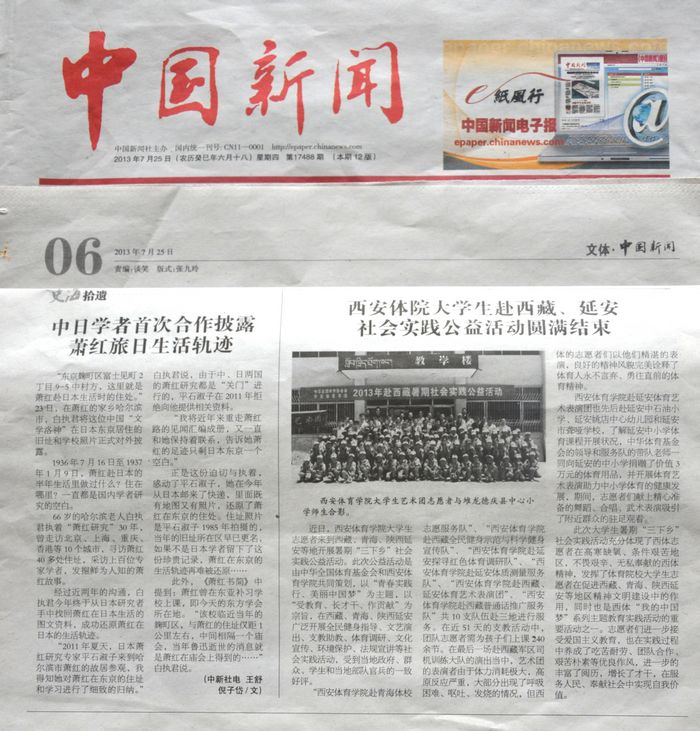 《中国新闻报》对我院“三下乡”社会实践活动进行报道
