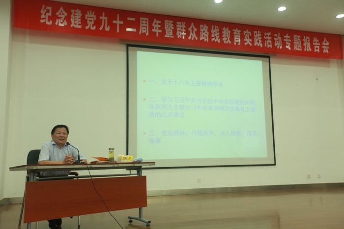本网讯 在我院深入开展群众路线教育实践活动调研工作以及迎接纪念中国共产党建党92周年之际,6月13日晚,党委书记吴长龄同志在教学楼五楼报告厅为学院干部、教师和学生代表近五百人作了题为《学习贯彻十八大精神 坚定中国特色社会主义理想信念》的辅导报告。学院领导及党委委员出席了报告会,会议由党委委员、组织部长刘新平主持。