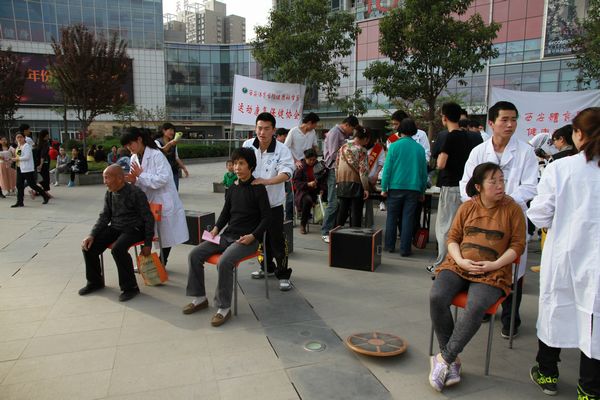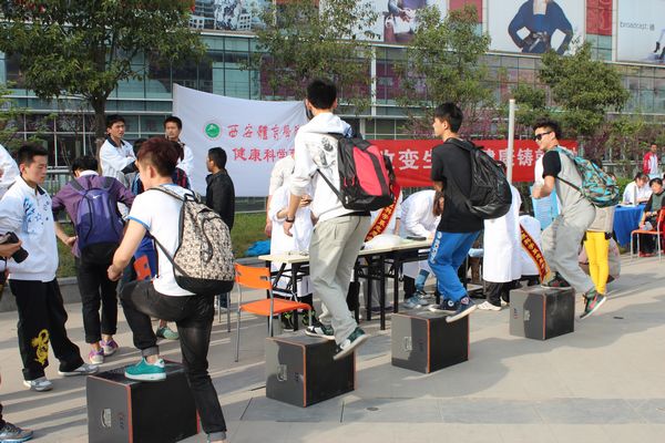 活动当天,健康科学系的志愿者们在活动现场设立11了个咨询测量点为现场200多名群众进行了体质检测、健康义诊,讲解和教授了按摩、健身方法,还利用我院台阶试验等仪器为大家进行免费的体质测量并为居民开出运动处方,引导广大市民走向户外,合理锻炼;体育艺术系、社会体育与休闲体育系、大学生艺术团的志愿者们现场展示的花式篮球、瑜伽、双节棍、健身球、爵士舞等体育项目表演引来观众的阵阵掌声;体育教育系等系的志愿者们组成的科学健身宣传组为市民发放《阳光体育科学健身》手册、《体育法》、《全民健身计划纲要》等宣传材料2千余份,并展出体育锻炼及运动康复相关展板42块,现场为市民们答疑解惑。