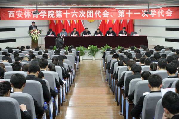 本网讯12月26日下午,我院在教学楼一楼报告厅召开第十六次团代会、第十一次学代会。共青团陕西省委副书记徐永胜、共青团西安市委副书记于海夫、西北工业大学团委书记马俊、陕西省学联主席苏翔应邀出席会议。院长苏明理、组织部部长刘新平出席了会议。各职能部门负责人,各系、部、院、校党总支书记,省内兄弟院校、部分区(县)团委来宾及近200名团、学代表参加了本次大会。