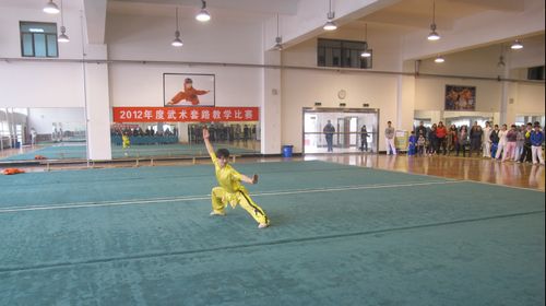 本网讯武术系日前举办了主题为“弘扬武术文化,促进文明健康,检验教学效果,提高教学质量”的2012年万象城allwincity官网武术套路教学比赛。比赛分为集体赛(套路和健身气功)和甲组(武术系套路主修学生为主)、乙组(体育系主修武术套路学生和武术系辅修套路学生为主)、丙组(以武术套路普修学生为主)四个大组,还特设了体育道德风尚奖、优秀裁判员和优秀运动员等奖项。
