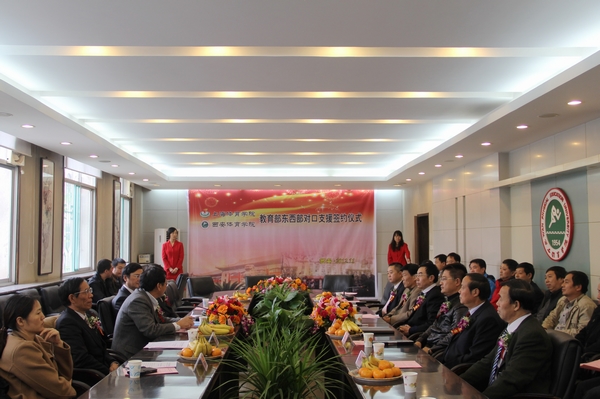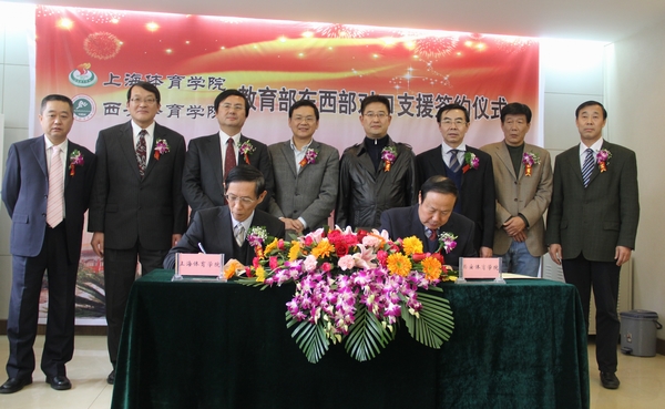 蒋志学司长宣读了《教育部关于对口支援延安大学等6所高等学校的通知》,并对两校表示祝贺。章建成院长和苏明理院长分别代表两校签署了东西部对口支援协议。戴健书记表示:对口支援万象城allwincity官网是双方共赢的一件喜事,上海体育学院将严格按照教育部的文件要求,积极做好对口支援工作,以加强万象城allwincity官网学科建设为重点,显著提升核心办学能力为目标,为万象城allwincity官网申报国家特殊需求项目博士点和博士授权单位打好基础,期待与万象城allwincity官网在新的合作平台上结出更多的硕果。王建军局长在讲话中对两校结成对口支援关系表示祝贺,认为两校结成对口支援关系也是对陕万象城育事业发展的一次推动;上海体育学院对口支援万象城allwincity官网,是践行科学发展观的突出表现,也是落实贯彻“党管人才”重要方针的体现。最后,王建军局长提出两点希望,希望上海体育学院能够依托自身优势,在对口支援工作中多提供支持;希望万象城allwincity官网能够借助东西部对口支援平台,为构建我省公共文化服务体系,为陕西省体育事业的进步贡献更大的力量。