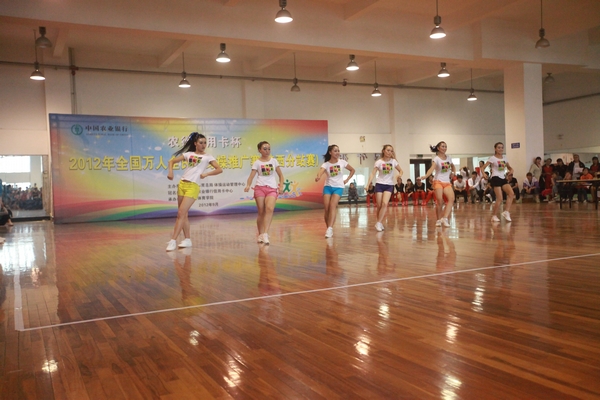 本网讯9月22日, 2012全国万人全民健身操大赛(陕西分赛区)在我院武术套路馆隆重开赛,本次比赛为期2天,来自我省和山西省的23支代表队500余名运动员、教练员参赛。此次健身操大赛着眼于大众百姓对生活品质的追求,意在大力推广科学健身方法,全面提高全民族的健康水平,提升品位的健身文明生活,充分展示我国2008奥运会后全国全民健身操运动发展的成果。