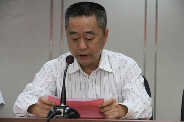 竞走奥运金牌得主陈定(左二)、教练孙荔安(左三)、我院院长苏明理(右二)、副院长周里(右一)、体育教育系主任周家颖(左一)参加表彰大会