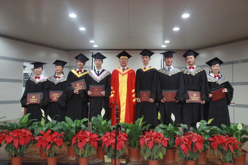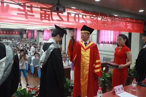 院长苏明理教授为毕业生代表拨穗、颁发毕业证、学位证