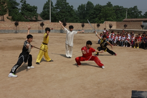 本网讯 6月1日,武术系党政领导、辅导员带领12名学生代表,赴乾县漠西乡贾赵完小和那里的200多名小朋友共度六一,为该校送去捐款,给孩子们赠送了体育器材并表演了精彩的街舞和武术节目。