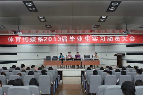 本网讯 6月5日,体育传媒系在教学楼一楼报告厅召开了2013届毕业生实习动员大会,系党政领导、各教研室负责人参加了会议。2009级辅导员尤勇主持会议。