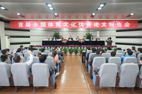 本网讯4月9—11日,由国家体育总局体育文化发展中心主办的首届全国体育文化优秀论文报告会在我院召开。国家体育总局体育文化发展中心副主任覃燕庆、我院院长苏明理、中宣部新闻出版局副局长刘建生等领导和专家出席开幕式并分别致辞。开幕式由体育文化发展中心副主任曹康主持。