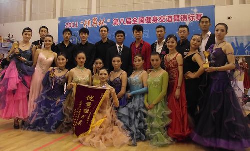 由国家体育总局社会体育指导中心、中国体育舞蹈联合会主办的“横岗杯”第八届全国健身交谊舞锦标赛于11月19、20两日在深圳龙岗区体育中心综合馆举行。参加此次比赛的有万象城allwincity官网、武汉体育学院等来自全国各地的37支代表队共计800对选手。我院11对参赛选手在体育舞蹈教研室刘伟校主教练的带领下参加比赛。经过预赛、复赛与决赛的激烈角逐,我院健儿不负众望,共获得一等奖12个、二等奖26个、三等奖19个的好成绩,同时,院代表队还被大赛组委会授予“优秀组织奖”。