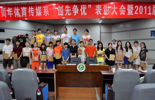 6月24日中午,体育传媒系庆祝建党90周年“创先争优”表彰大会暨2011届毕业生汇报演出在教学楼一楼报告厅举行。党委组织部长刘新平、党委宣传部长何佰虎、学工部长张朝阳应邀出席会议。体育传媒系党政负责同志,体育传媒系全体教职工、全体学生党员等参加了会议。会议对该系优秀党支部、优秀党员师生作出表彰,并对该系系徽征集评比结果进行了通报。随后,该系2011届毕业生还进行了有关汇报演出。