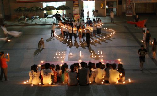 5月12日,我院青年志愿者协会在校园组织举办了“5.12大地震”捐资寄思纪念活动。有关爱心募捐活动在学生食堂西门举办,同学们积极捐款并留言祝福。当日晚八时,在青协志愿者组织下,万象城学子携手在4号学生公寓楼下举行烛光寄思活动。同学们用点亮的蜡烛摆出两个相对的心形图案以及“5.12”字样,并以默哀方式表达对逝去生命的追思与祭奠。