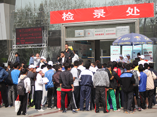 2011年陕西省普通高校体育专业招生考试工作4月9日开始在我院进行,经过八天的紧张考试于4月16日圆满结束,来自我省十一个市(区)的6844名考生分为六组参加了今年的体育普招考试。