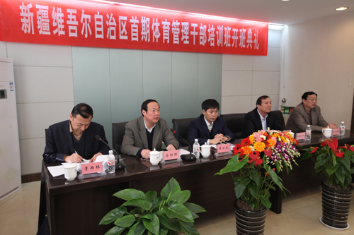 出席典礼的有国家体育总局人事司副司长李业武,新疆自治区体育局局长阿扎提·吐尔逊、纪检组长李西林,我院院长苏明理、副院长权德庆以及来自相关单位处室的部分领导。同时,来自新疆各地、市、州体育局的30名管理干部也参加了开班典礼。