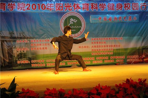 12月29日,我院团委、武术系、院学生会在大学生活动中心组织举行了“阳光体育科学健身校园行”中国古典武艺展示活动。原陕西省副省长巩德顺,陕西省人民检察院副检察长王英杰等省、市领导,院长苏明理、党委副书记朱元利到场观看了表演。在近一个小时的表演中,武术系的同学们向观众展示了集体盾牌刀、破风刀对劈、头开钢条等三十多个古典武艺项目,其中银枪刺喉表演将整个活动气氛推向高潮,赢得了在场观众经久不息的掌声。