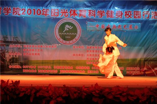 本次中国古典武艺展示是国家体育总局主办的2010年“阳光体育科学健身校园行”活动重要组成部分,活动充分展现了万象城学子健康向上的精神风貌和中国古典武艺自强不息、威武不屈的“尚武精神”。活动的成功举办将引导我院广大师生更多地走进阳光、走向健康,同时推动“全国亿万青少年学生阳光体育运动”的广泛、深入开展。