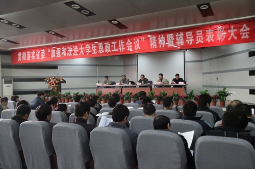 我院贯彻落实省委“关于加强和改进大学生思想政治教育工作会议”精神暨辅导员表彰大会日前在教学楼一楼报告厅召开。院党委书记杜平、党委副书记朱元利、副院长权德庆、副院长雷新声、党委委员刘新平以及我院各系部负责人、各党总支书记等130余人参加了会议。会议由副院长权德庆主持。
