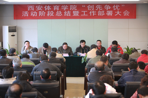 最后,朱副书记要求学院党政各部门一定要在创先争优活动中自觉地把创建活动与经常性的贯彻落实行动紧密结合起来,与学院重点和中心工作结合起来,牢牢把握“坚持科学发展、突出办学特色、提高教育质量、建设教学研究型体育大学”的实践载体,突出针对性、增强实效性,以更加广阔的视野、更加开放的姿态、更加执著的努力,把我院创先争优活动推向高潮。