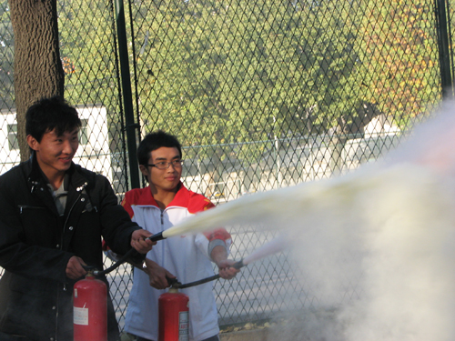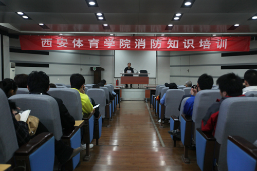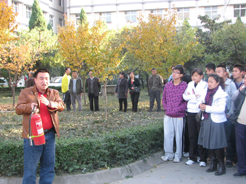 2010年11月8日下午在教学楼一楼报告厅,西安市消防协会有关负责人应邀为学院教职员工作了“11.9”消防安全知识讲座。讲座中对消防安全知识和冬季防火工作结合实例做了详细的讲解。讲座结束后,保卫处工作人员在室外向现场师生介绍了消防器材的使用,演练了自救逃生和消防求援,并组织师生开展了现场疏散和灭火演习。